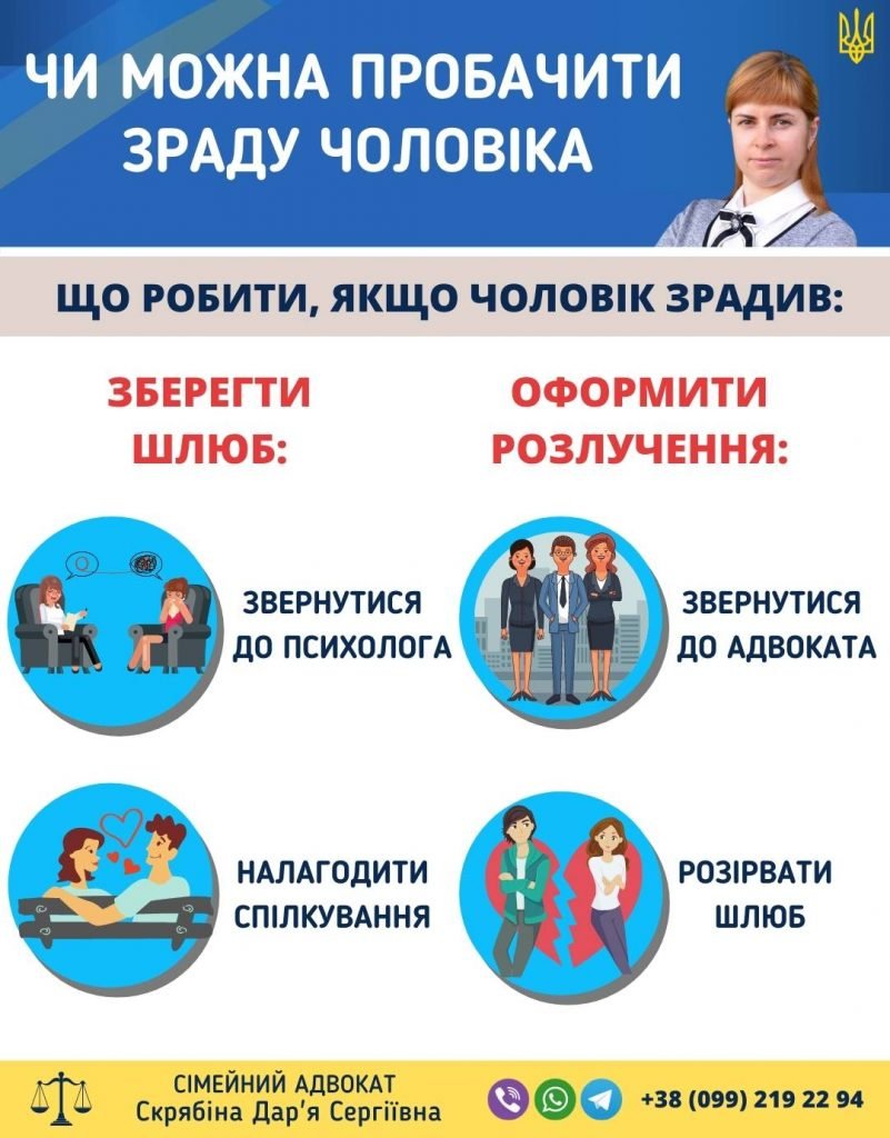 - З’ясування причин. Просто зрозуміти, чому це сталося. Без громовиць і буревіїв, довірившись відвертій розмові. Хоча, хто знає, чи щирість зради не відкрита рана?