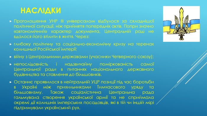 Крім того, російські революційні кола не готові були так легко відпустити таку родючу і багату територію, як Україна. Тому політична гра стала складною розгадкою, а наслідки 3 універсалу виявилися далекими від миттєвого тріумфу.