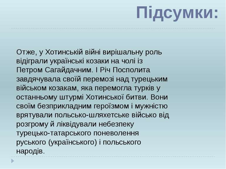 Наслідки Хотинської війни для кожного з учасників були зовсім різними. Навіть геополітично вона багато чого змінила. Наприклад, Україна… Для неї цей конфлікт виявився новим віянням в напрямку незалежності.