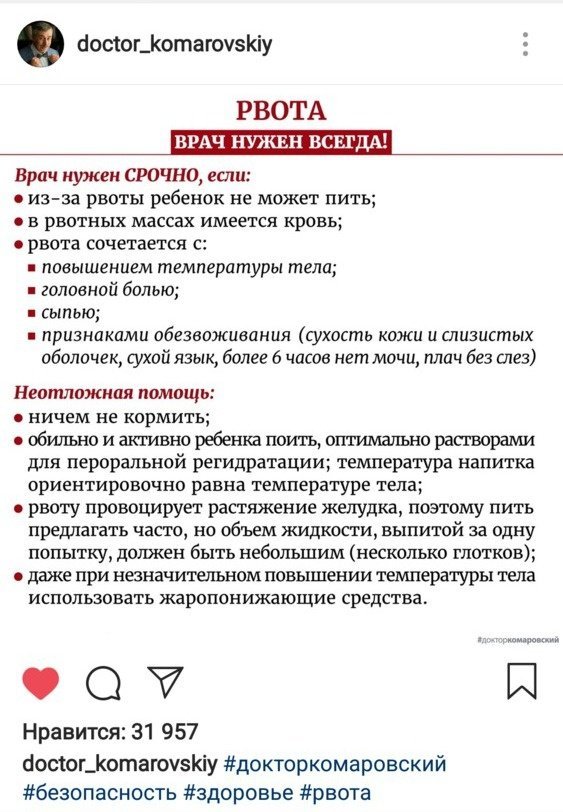 Євген Комаровський, відомий дитячий лікар, радить перш за все тримати нерви в спокої. Він зазначає, що часто рвота — це спосіб організму очиститись від шкідливих речовин. У таких випадках важливо не заважати, а підтримати: дайте дитині відпочити, запропонуйте рідину і, звичайно, за необхідності, звертайтесь за допомогою до лікарів.