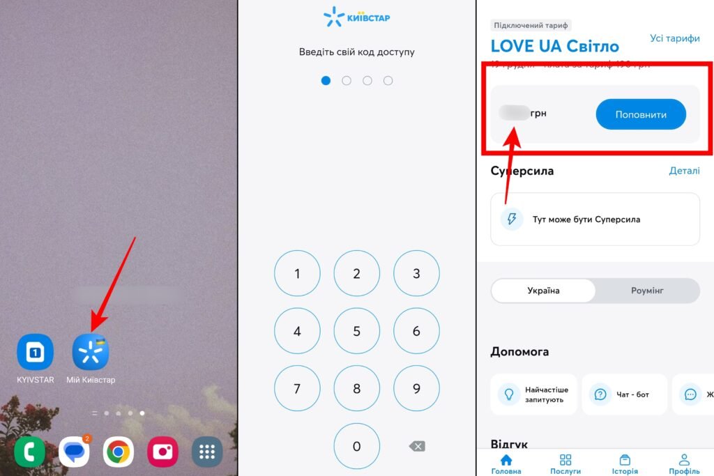 - На екрані одразу з’явиться інформація про ваш баланс.